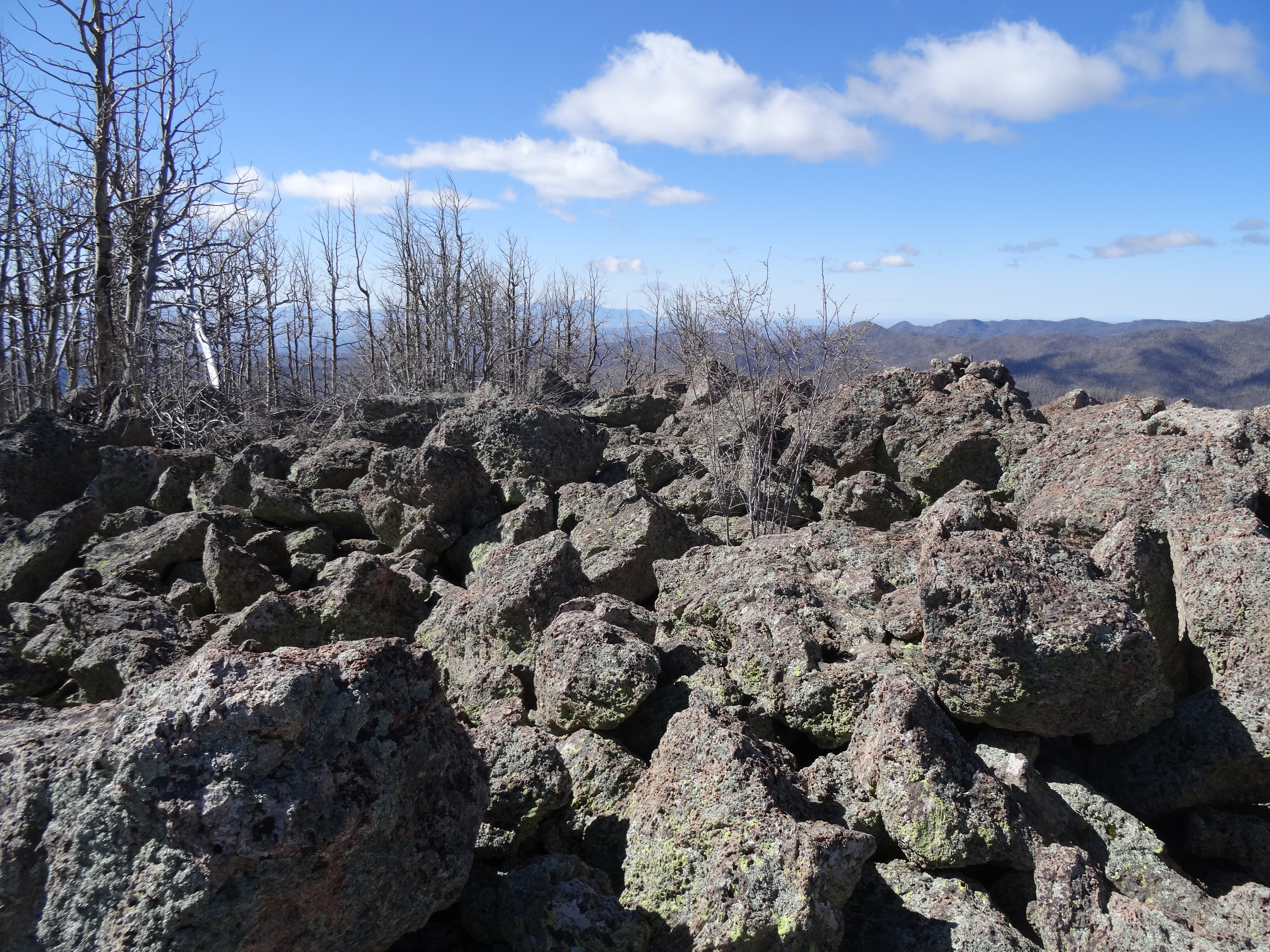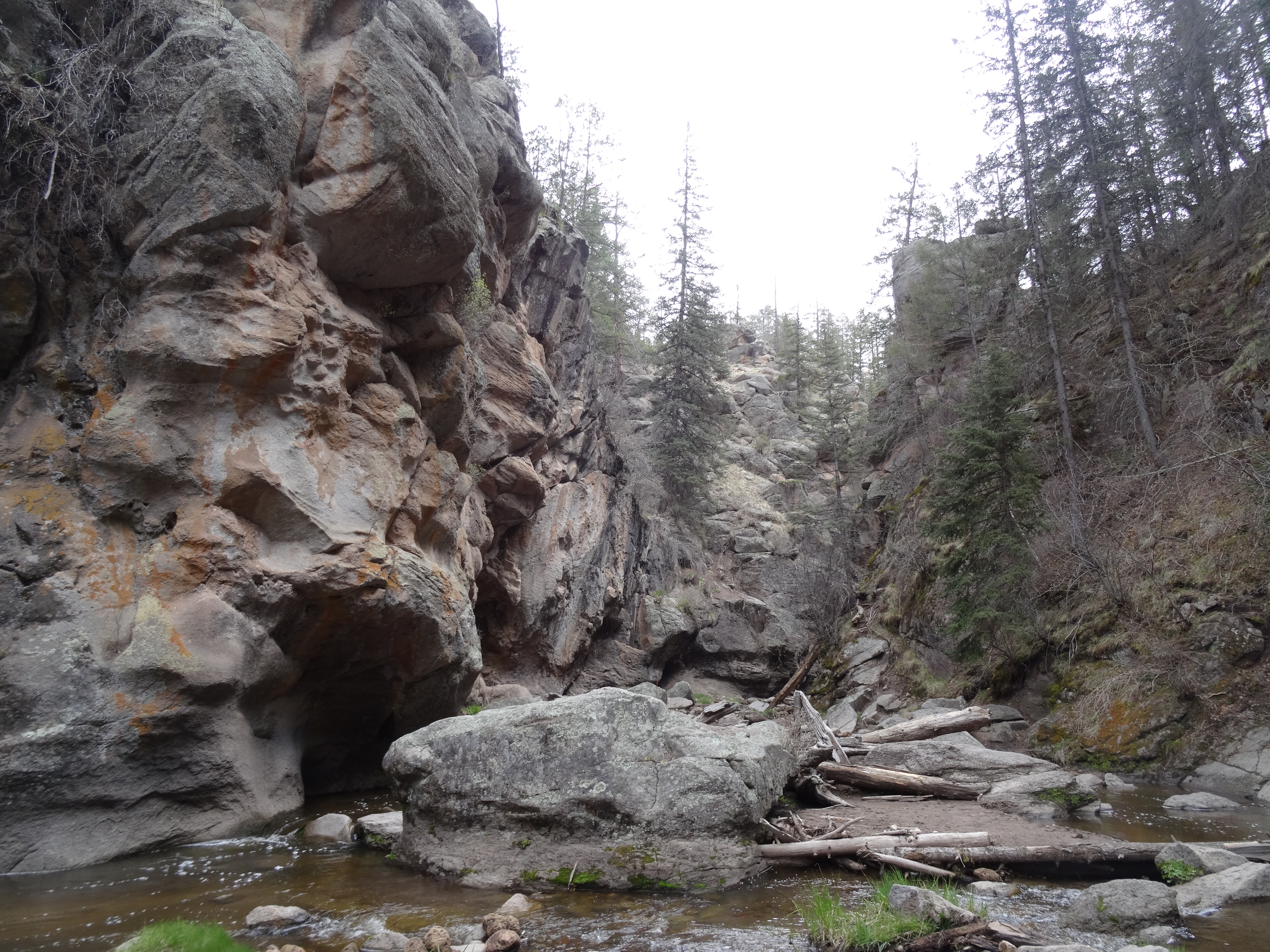 The expedition to New Mexico was a success. In 7 days, I sampled 9 sites, summited 5 peaks, and observed some beautiful country. On day 5, I was overtaken by a brutal snowstorm in Valles Caldera National Monument. One minute, it was sunny and warm, and the next I couldn’t see 5 feet in front me as flurries of snowflakes draped the landscape. I sampled a site along the east fork of the Jemez River (more of a creek by my standards). I waded through the ice-cold waters as the weather remained bipolar. At last I found S. austromontana weeping from the steep granite cliffs of the canyon and rejoiced, despite my frigid state. It was absent in the paired burned site.